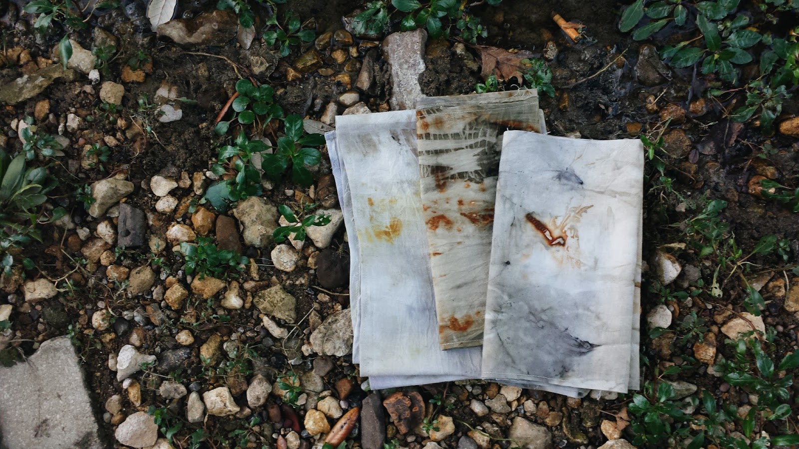 I feel proud that I side stepped into a low water creek to capture these shots. I feel that the gravel, sand, and plant life was essential to my eco printed scarves.